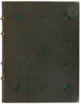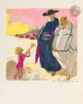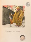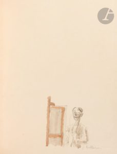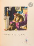 BRULLER (Jean). Hypothèses sur les amateurs de peinture à l'état latent. Un postulat et 16 lithographies en corollaire. Paris : [Chez l'auteur] au 19 de la rue Servandoni (imp. Bonnet et Chanove), [1927]. — In-4, 280 x 216 : (15 ff. 3 premiers blancs). Maroquin vert bouteille parsemé de losanges de maroquin vert herbe, de deux tailles différentes, sertis d'un double filet à froid, entrelacs de listels vert herbe à l'intérieur, doublures et gardes de soie brochée à motifs géométriques, tranches dorées sur témoins, couverture et dos conservés, étui (H. Blanchetière). Édition originale de cet ouvrage dans lequel Jean Bruller nous livre sa perception de l'art moderne... Ainsi dans la partie intitulée «Corollaire », nous présente-t-il sur un ton parodique «L'amateur d'Édouard Detaille, Les amateurs de Pablo Picasso, L'amateur d'Henri Matisse, L'amateur de Soutine, L'amateur de Jacqueline Marval, L'amateur de Georges Rouault, Les amateurs de Maurice Denis, L'amateur de Pascin, Les amateurs de Pierre Bonnard, Les amateurs d'André Favory, Les amateurs de Juan Gris, L'amateur de Kisling, L'amateur(e) de Maurice Vlaminck, Les amateurs de Marie Laurencin, L'amateur de Paul Signac et L'amateur d'Henri Rousseau.» Tirage limité à 211 exemplaires auxquels s'ajoutent quelques hors commerce. EXEMPLAIRE UNIQUE IMPRIMÉ SUR PAPIER DU JAPON, non compris dans la justification, ou faisant partie des exemplaires hors commerce destinés à l'artiste, spécialement imprimé pour Madame Paul Verdier. L'illustration se compose de 16 lithographies en couleurs, chacune enrichie d'une légende à la plume ainsi que d'une remarque originale dessinée à l'aquarelle et signée par l'artiste. L'exemplaire comporte également une suite en noir des 16 compositions. Il a par ailleurs été enrichi de trois aquarelles originales, la première sur feuillet contrecollé (250 x 190) représentant un paysage urbain, la seconde sur feuillet contrecollé (234 x190) étant une variante d'une des seize lithographies («Les amateurs de Maurice Denis ») la troisième étant un croquis rehaussé à l'aquarelle figurant un artiste à son chevalet ou un amateur face à une œuvre d'art, réalisé directement sur le second feuillet blanc de l'ouvrage. La dernière lithographie en noir ainsi que la justification ont été contrecollées sur les derniers feuillets. La justification porte la signature autographe de Jean Bruller. Bel exemplaire en reliure mosaïquée de l'époque de Henri Émile Blanchetière (1881-1933). Mors frottés et partiellement fendus sur le premier plat. Dos passé. Provenance : Alexandrine Verdier (1891-1972), épouse du riche homme d'affaire franco-américain Paul Verdier (1882-1966) avec son ex-libris gravé sur chine "Chez Drinette" contrecollé sur la première garde.