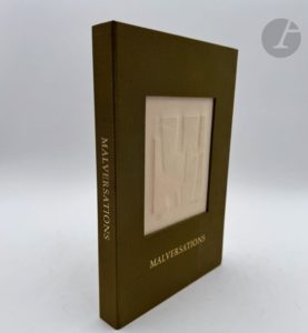 CARRÉGA (Nicolas) - CAILLOIS (Roger). Malversations. [Bruxelles] : Andre de Rache, [1975]. —In-8, en feuilles, couverture rempliée, emboîtage de l'éditeur avec empreinte originale signée en creux sur le premier plat. Édition originale. UN DES 34 PREMIERS EXEMPLAIRES SUR VÉLIN D'ARCHES, celui-ci faisant partie des 25 mis dans le commerce, comprenant 4 empreintes gravées, imprimées et rehaussées à la main par le peintre et sculpteur Nicolas CARRÉGA (1914-1992), une cinquième empreinte en blanc illustre le premier plat de l'emboîtage. Toutes sont numérotées et signées par l'artiste. Exemplaire très bien conservé, enrichi d'une biographie du 6 pages dactylographiées de Nicolas Carréga.
