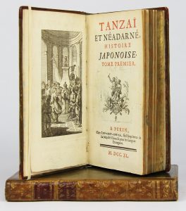 [CREBILLON]. TANZAÏ ET NEADARNE, HISTOIRE JAPONOISE. Pékin, (Paris) Chez Lou-chou-chu-la, 1740. 2 vol. in-12, basane olive, dos lisse orné, tranches dorées (Reliure de l’époque)
