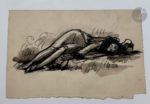 EDELMANN (Charles Auguste) - DEVAL (Jacques). Marie galante. Paris : Mornay, 1935. —In-8, broché, couverture rempliée. Édition à tirage limité, illustrée de nombreuses compositions de Charles Auguste EDELMANN (1879-1950), gravées sur bois par Georges Beltrand. Un des 1635 exemplaires sur Rives à la forme. Il est enrichi de 5 DESSINS ORIGINAUX de l'artiste, 4 étant en feuilles et le cinquième à la page 8. Sous ce dernier figure cette dédicace autographe signée : «Au docteur Thévenard // très amical souvenir // Ch. A. Edelmann. » Trois de ces dessins ont servi à l'illustration du livre pour les vignettes de pages 89, 179 et 239. Un croquis au crayon figure au verso du dessins pour la page 89. Exemplaire très bien conservé.