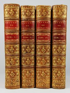 DESTOUCHES (Philippe NERICAULT). ffiUVRES DRAMATIQUES. Paris, Imprimerie Royale, 1757. 4 vol. in-4°, basane fauve, dos orné, tr. bleues (Reliure de l’époque)