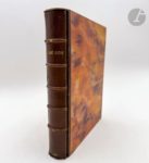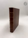 FOUJITA (Léonard) - GOOR (Gaston). André Gide. Paris : Éditions du Capitole, [1928]. —In-8, maroquin havane janséniste, dos à nerfs, encadrement de même maroquin à l'intérieur, orné de filets dorés gras et maigres, doublures et gardes de soie moirée brune, tranches dorées sur témoins, couverture et dos conservés, étui bordé (Canape et Corriez). Édition originale de cet ouvrage collection publié en l'honneur d'André Gide. Y sont rassemblés des textes des amis de l'écrivain tels que Paul Valéry, Claude Aveline, Jacques-Émile Blanche, Jacques Copeau, Edmond Jaloux, François Mauriac, Henry de Montherlant, Paul Morand, etc. L'illustration comprend la reproduction d'un portrait de Gide par Albert Laurens en frontispice, de divers portraits photographiques et de nombreuses vignettes dessinées et gravées sur bois par Gaston GOOR (1902-1977). Un des 200 exemplaires numérotés sur papier Madagascar, comprenant en plus un portrait hors texte gravé à l'eau-forte et à l'aquatinte par Léonard FOUJITA (1886-1968). Seuls les 267 premiers exemplaires comprennent ce portrait inédit de l'artiste. Bel exemplaire relié par Canape et Corriez. Petit accroc sans gravité au troisième caisson et quelques minimes frottements d'usage.