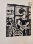 GROMAIRE (Marcel) - HERTZ (Henri). Vers un monde volage. Paris : Marcel Seheur, 1926. — In-4, broché, couverture rempliée. Édition tirée à 271 exemplaires, illustrée de 10 eaux-fortes originales à pleine page de Marcel GROMAIRE (1892-1971). Un des 225 sur vélin d'Arches. Restaurations à la couverture, dos en partie décollé.