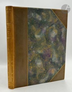 GROMAIRE (Marcel) - BERTRAND (Aloysius). Dix contes de Gaspard de la nuit. Paris : Tériade, [1962]. —In-4, demi-maroquin gris-vert à coins, filets dorés, dos lisse orné, tête dorée, non rogné, couverture et dos conservés (reliure de l'époque). Très belle et rare édition de ce recueil de contes poétiques d'Aloysius Bertrand, illustrée de 10 eaux-fortes originales de Marcel GROMAIRE (1892-1971) à pleine page, que l'artiste avait réalisées en 1930. Tirage à seulement 140 exemplaires sur vélin d'Arches, signés par l'artiste à la justification. Bel exemplaire, très bien conservé malgré le dos passé. Provenance : Raymonde Dubois, avec ex-libris.