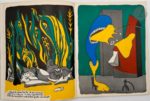 HENRY (Maurice). Les Métamorphoses du Vide. Paris : les Éditions de Minuit, [1955]. —In-4, cartonnage noir illustré de l'éditeur, à dos de toile noire. Édition originale de cette histoire en images racontant le voyage onirique et poétique d'Adrien. Cet ouvrage est l'œuvre du poète, peintre et illustrateur Maurice HENRY (1907-1984), proche des surréalistes. Il est considéré comme l'un des plus beaux livres objets du XXe siècle. Il se compose de 64 planches en couleurs sur 32 feuillets dont 16 ajourés. « À l’image du voyage onirique et enchanteur du personnage, qui a quitté la terre ferme pour circuler à travers des paysages fantastiques, tour à tour aquatique, végétal et minéral, ces ajours induisent dans la lecture une logique nouvelle et en bouleversent la temporalité : chaque feuillet tourné est un pas vers une surprise. Empreintes de surréalisme, ces Métamorphoses, tout à fait à part dans l’œuvre de Maurice Henry, content aussi en images des réminiscences clés de son existence en réunissant les figures de compagnons de route tels René Daumal, poète du Grand Jeu, et André Breton » (présentation des éditions des Sandres pour la réédition du livre en 2018). Exemplaire de second tirage, le premier ayant été en grande partie détruit dans un incendie. Exemplaire bien conservé.