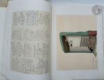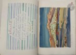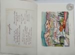 HOWET (Marie). Les Chansons d'Évangélia. Préface de Gustave Kahn. Paris : s.n., 1927. —In-folio, broché, couverture rempliée, sous chemise et étui cartonnés de l'éditeur. Édition originale tirée à seulement 155 exemplaires, de ces « impressions et souvenirs de Grèce et de Turquie » de la peintre et aquarelliste belge Marie HOWET (1897-1984). L'édition reproduit les 25 belles aquarelles faites par cette dernière, dont celle sur le titre, reproduites par le maître enlumineur Jean Saudé. Elles illustrent le texte placé en regard, reproduit en fac-similé de l'écriture de l'artiste. Un des 100 exemplaires sur papier d'Arches à la forme, numérotés et signés par Marie Howet à la justification. Il est enrichi de ce bel envoi autographe signé sur le faux titre : « Je suis d'autant plus heureuse // que vous ayez ce livre // que vous avez été mon // premier pilote à // Salonique le 13 janvier 1926 — // Sympathiquement // Marie Howet // Bruxelles le 16 juin 1928. » Exemplaire très bien conservé sauf la chemise et l'étui qui sont en très mauvais état de conservation, en partie défaits et présentant des mouillures.