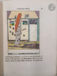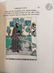 KING (Jessie M.) - KIPLING (Rudyard). L'Habitation forcée. Traduction de Louis Fabulet et Robert d'Humières. Paris : René Kieffer, 1921. — In-8, simili peau de serpent noire orné de points argentés, plats ornés d'une composition en relief représentant un couple de profil devant un paysage de campagne, figurant dans un ovale recouvert de papier doré, dos lisse, tête dorée, non rogné, couverture et dos conservés (René Kieffer). Belle édition tirée à 550 exemplaires, illustrée de 30 compositions en couleurs de la dessinatrice et illustratrice écossaise Jessie Marion KING (1875-1949). Un des 500 exemplaires sur vélin à la forme, dans une très belle reliure des ateliers Kieffer, très bien conservé.