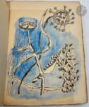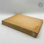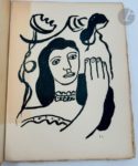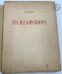 [LÉGER (Fernand)] - RIMBAUD (Arthur). Les Illuminations. Préface de Henry Miller. Lausanne : Éditions des Gaules, [1949]. —In-4, en feuilles, couverture rempliée, chemise cartonnée de l'éditeur. Édition tirée à 395 exemplaires, illustrée de 15 lithographies originales à pleine page de Fernand LÉGER (1881-1955). Exemplaire dont 10 de ces 15 lithographies ont été rehaussées au pochoir sous la direction de Louis Grosclaude. Le nombre de lithographies rehaussées varie selon les exemplaires. Un des 100 exemplaires sur papier vélin teinté lourd, signés par Léger et Grosclaude à la justification. Celui-ci (n° 89) fait normalement partie des 75 avec une suite sur chine mais cette suite manque. Manque l'étui, chemise abîmée. Salissures et déchirures à la couverture. Transfert d'un signet ou d'un feuillet sur chacune des lithographies. Provenance : cachet du Musée national Fernand Léger à Biot sur le titre et au verso du dernier feuillet de texte.