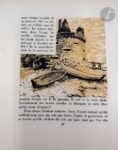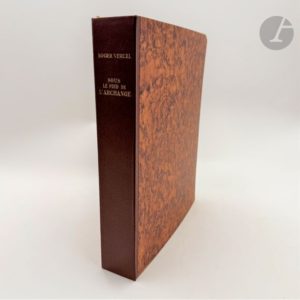 MÉHEUT (Mathurin) - VERCEL (Roger). Sous le pied de l'archange. Paris : Au Moulin de Pen-mur, [1947]. — In-4, en feuilles, couverture rempliée, chemise de l'éditeur. Édition des plus réussies illustrée de 82 compositions de Mathurin MÉHEUT (1882-1958), dont un frontispice, 10 lettrines, 67 compositions dans le texte et 4 illustrations à pleine page. Tirage à 1000 exemplaires ; celui-ci est l'un des 600 numérotés sur vélin du Marais et plus spécifiquement l'un des 100 sur ce papier numérotés de 61 à 160, enrichis d'une suite en noir des illustrations sur vélin de Lana. Manque l'étui.