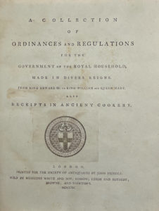 [ANGLETERRE] — A Collection of ordinances and regulations for the government of the Royal Household, made in divers reigns. From King Edward III to King William and Queen Mary. Also receipts in ancient cookery.