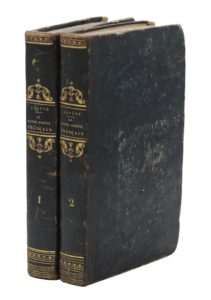 Paris, Didot, 1822. 2 volumes in-8, demi-basane noire, dos lisses ornés de filets et fleurons dorés, tranches marbrées (Reliure de l’époque).I. titre gravé, 4 ff., iv-348 pp. – II. frontispice, 2 ff., 282 pp., 1 f. ; 25 menus dépliants, 8 planches dépliantes.