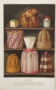 Elle est illustrée de 10 planches hors texte en couleurs, chromolithographiées d'après E. Ronjat, figurant de somptueux gâteaux et de 137 gravures sur bois dans le texte.