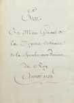 Reliure de l'époque de plein veau havane raciné, dos à nerfs, orné aux petits fers dorés dans les entre-nerfs, pièces de titre et de datation maroquin brun, tranches rouges. Colophon (copie de l'original) : « Fait et arrêté à (blanc) le premier janvier 1752 signé Charles de Bourbon et plus bas signé par Monseigneur Felix » (page 359). Colophon des Dépenses Duc de Bourgogne (copie de l’original) : « Fait et arrêté à (blanc) le pier jier 1752 signé Charles de Bourbon et plus bas signé par Monseigneur Felix. »