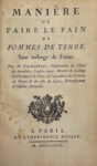 Paris, Imprimerie Royale, 1779. In-8, demi-basane blonde, dos lisse orné, pièce de titre en long de maroquin bordeaux (Atelier Laurenchet).Édition originale rare de cet opuscule de Parmentier, qui dès 1777 réalise des petits pains à partir de la pulpe de pommes de terre dans la boulangerie modèle de l'Hôtel royal des Invalides, en présence de Franklin, de Le Noir et de plusieurs officiers de l'État major.