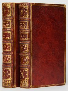 RAULIN (Joseph). TRAITE DES FLEURS BLANCHES AVEC LA METHODE DE LES GUERIR. Paris, Hérissantfils, 1766. 2 vol. in-12, maroquin rouge, filets dorés sur les plats, dos très orné, tranches dorées (Reliure de l’époque)