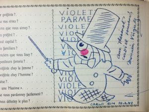 QUESTIONNAIRE. Album pré-imprimé Mes Questions (Librairie Cumin frères, Nice) avec 12 P.A.S., 1947-1958, in-8° oblong, percaline grise de l'éditeur. Questionnaire imprimé de 25 questions sur 2 pages en regard : « Votre fleur préférée ? Le pays de vos rêves ? »... On relève les réponses autographes signées de Pauline David, Jean Nohain, Gisèle Parry, Robert Beauvais, Béatrix Dussane, Carlo Rim (avec dessin), René Wheeler, Gisèle Casadesus, Jean Cocteau, Louise de Vilmorin...