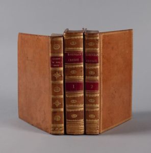 [HAWKESWORTH (John) - SWIFT - POPE]. An Account of the Life of the Reverend Jonathan Swift, D. D. Dean of S. Patrick's, Dublin. Traduction interlinéaire à laquelle est ajoutée une Traduction Françoise très-exacte, placée en forme de Notes. With The death of Mrs Johnson Stella, taken from the Works of Swift, with Letters from the same, and some Letters of Pope taken from his own Works. Traduites de même, et imprimées par Mme Montmorency, Albert-Luynes. S. l. [Dampierre], An VIII, (1800). In-8°, basane blonde, dos lisse orné (reliure de l'époque). 63 cahiers signés : A-Z4, Aa-Zz4 & Aaa-Rrr4 ; soit 502 pp. (titre et avertissement, la dernière blanche non numérotée). Édition bilingue interlinéaire et pédagogique, selon la méthode de César Chesneau Du Marsais, mais légèrement modifiée avec une « Traduction Françoise très-exacte, placée en forme de Notes », imprimé par Guyonne Élisabeth Josèphe de Montmorency de Laval, duchesse de Luynes. Petites restaurations sur les coupes inférieures ; épidermure et petits trous de vers sur le premier plat. OUVRAGE DE LA PLUS GRANDE RARETÉ IMPRIMÉ SUR LES PRESSES PRIVÉES DU CHÂTEAU DE DAMPIERRE par Élisabeth de MONTMORENCY de LAVAL (1755-1830), duchesse de LUYNES. Haeghen 2 ; Luynes, L'Imprimerie de Dampierre, 2020, p. 45 (cité avec un titre légèrement différent, sans le décrire).