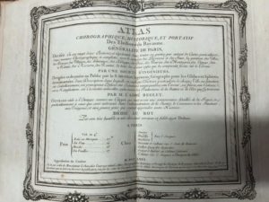 DESNOS (Louis Charles) & REGLEY (Abbé). Atlas chorographique, historique, et portatif des Elections du Royaume. Généralité de Paris, Divisée En ses vingt deux Elections, et réprésentée dans toutes ses parties par autant de Cartes particulieres [...] Accompagnées d'une Description dans laquelle on explique l'histoire particuliere de chaque Ville [...]. A Paris, Chez Savoye, Despilly, Duchesne, & alii, et Chez L'Auteur, 1766. In-4°, veau, dos lisse orné. 27 double-planches gravées, dont un titre, une illustration de la « Statuë Equestre De Loüis le bien Aimé [...] » et 25 cartes aquarellées, chacune accompagnée de leur description par REGLEY. De la bibliothèque Legentil, avec ex-libris. Accident en coiffe de tête, épidermures ; déchirures marginales (pp. 1/2 de la « Description de l'Élection de Meaux » et à la planche « Election de Coulomiers ») sans atteinte au texte ou à la carte.