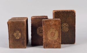 [RELIURES aux ARMES]. 7 volumes in-12 aux armes, dont Machault d'Arnouville (1 vol.), Choiseul (4 vol.), etc. Volumes dépareillés.