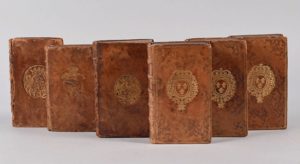 [RELIURES aux ARMES]. 7 volumes aux armes, dont : • Royales (sur Orléans Histoire des révolutions d'Angleterre 1762. 4 vol.), • Toulouse (1 vol.), • Béarn (1 vol.) & • Calenberg ? Volumes dépareillés.