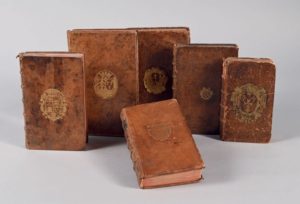 [RELIURES aux ARMES]. 6 vol. in-12 aux armes, dont : • non identif. (O.H.R. 440), • Brancas/Mailly (1 vol.), • Bignon (1 vol.), • Hanrion ? (1 vol.), • Collège parisien (1 vol.), etc. Volumes dépareillés.