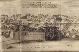 [VERSAILLES & MARLY]. PIGANIOL de La FORCE (Jean Aymar). Nouvelle Description des chateaux et parcs de Versailles et de Marly : contenant une explication historique de toutes les Peintures, Tableaux, Statues, Vases & Ornemens qui s'y voyent [...]. A Paris, Chez Hochereau, 1764. 2 volumes in-12, veau marbré, dos lisse orné (reliure de l'époque). « Neuvième édition. » Seize planches gravées repliées. De la bibliothèque de Antoine Jacques Patu, avec ex-libris.