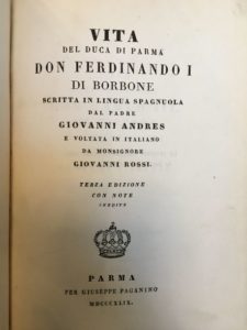 [BOURBON de PARME]. ANDRES (Giovanni). Vita del duca di Parma Don Ferdinando I di Borbone [...]. …