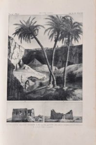 CAILLIAUD (Frédéric) & JOMARD (Edmé-François). Voyage a Méroé, au fleuve blanc, au-dela de Fâzoql dans le midi du royaume de Sennâr, a Syouah et dans cinq autres oasis ; fait dans les années 1819, 1820, 1821 et 1822. Paris, de l'Imprimerie de Rignoux, 1823. 2 volumes grand in-folio, demi-veau brun à coins, filet doré bordant les plats, dos à nerfs orné (Lepré). 150 planches d'après Frédéric CAILLIAUD, la plupart lithographiées, dont une grande carte (vol. II, pl. LIV/LV). Volumes d'Atlas seuls. De la bibliothèque Robineau, avec timbre humide sur les titres et quelques planches. Reliure accidentée ; mouilllures d'angle ; galeries de vers marginales et rousseurs sur quelques planches ; une planche renmargée (vol. II pl. LI) ; petite restauration sur une autre (vol. II, pl. LIV/LV). Hage Chahine, 758 (pour la seconde édition donnée en 1826/1827).