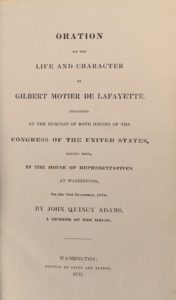 [La FAYETTE (Gilbert du Motier de )]. ADAMS (John Quincy). Oration on the Life and Character of …