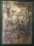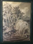 GUÉRIN (Maurice de ). Le Centaure et la Bacchante. Avec préface de Louis Barthou. A Paris, Le Livre Contemporain, 1931. In-4°, maroquin vert sombre, large décor géométrique estampé à froid ornant les plats, dos lisse muet orné du même décor, tranches dorées sur témoin, doublures imprimées sur soie argentée, couverture illustrée conservée, chemise et étui (G. Cretté succ. de Marius Michel). 49 bois en couleurs dans le texte dont certains à pleine page, par Jules CHADEL. Tiré à 121 exemplaires, celui-ci (n° 53), imprimé pour M. Maurice Lange. Exemplaire UNIQUE enrichi de HUIT DESSINS ORIGINAUX en couleurs sur chine, dont deux ayant servis à l'illustration des doublures. Étui et chemise passée. TRÈS BEL EXEMPLAIRE RELIÉ PAR GEORGES CRETTÉ.