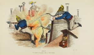Edition originale et premier tirage des 70 compositions hors texte de Grandville gravées sur bois et finement aquarellées à l’époque. Quelques rousseurs, sinon bon exemplaire, les coloris sont très frais.