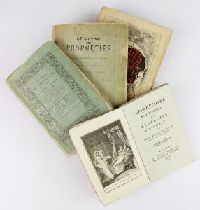 LACROIX (Paul). CURIOSITES INFERNALES. P., Garnier, 1886 - TIGER. Apparitions nocturnes. P., Tiger, (1800) - LE LIVRE DES PROPHETIES. Rennes, 1870 - ELEMENTS DE CHIROMANCIE. Paris, à la librairie (1844)