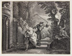 [LA FONTAINE]. SUITE D’ESTAMPES DESSINEES PAR LANCRET, PATER, EISEN, BOUCHER, VLEUGHELS, etc, pour illustrer les Contes de La Fontaine, gravées au burin par Depollier ainé. Paris, Lemonnier, 1885. In folio, demi percaline grise à coins, couv....