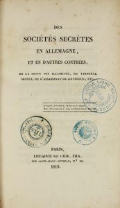[LOMBARD DE LANGRES (Vincent)]. DES SOCIETES SECRETES EN ALLEMAGNE, ET EN D’AUTRES CONTREES. Paris, Gide fils, 1819. In-8°, demi basane, dos lisse orné (Reliure de l’époque)