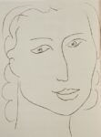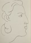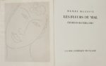 Charles BAUDELAIRE. Les Fleurs du mal. Paris, La Bibliothèque française, 1947. In-4, broché, chemise et étui. Monod, I-1114 /// 169-(1f.). Une eau-forte originale, 33 photo-lithos originales et 69 dessins de Henri Matisse, ces derniers gravés sur bois par Théo Schmied. Tirage à 320 exemplaires sur Rives (n° 275). On joint un dessin original au crayon bleu, sur un feuillet de papier (12 x 13,5 cm) extrait d'un carnet à spirale, représentant un visage de femme. Nous pensons ce dessin de la main de Matisse mais ne pouvons le certifier.