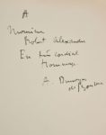 Tristan BERNARD. Tableau de la boxe. Paris, NRF, 1922. Petit in-4, broché. Monod, I-1431 /// 212-(2f.). Édition originale formant le second volume de la collection des Tableaux Contemporains, illustré de gravures à l'eau-forte par André Dunoyer de Segonzac, dont un frontispice, 8 à pleine page, 10 grandes têtes-de-chapitre et 12 dans le texte. Tirage à 333 exemplaires, celui-ci un des 318 sur vélin pur fil Lafuma Navarre (n° 267). Exemplaire enrichi d'un envoi autographe signé A / Monsieur / Robert Alexandre, / En très cordial/ hommage. / A. Dunoyer de Segonzac. Exemplaire débroché.