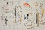 Robert BRASILLACH. Le Marchand d'oiseaux. Paris, Les Bibliophiles Franco-Suisses, 1958 (1959). In-4, en feuilles, chemise et étui. Monod, I-1897 /// 192-(2f.). 21 lithographies originales en couleurs de Gabriel Dauchot, dont un frontispice et 20 illustrations dans le texte. Tirage limité à 138 exemplaires sur BFK Rives, celui-ci un des 113 réservés aux membres de la société, ici imprimé pour Gaston Girousse (n° 42), enrichi d'une grande aquarelle originale signée, d'une suite sur Japon et du menu avec suite.