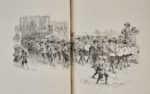 Alexandre DUMAS. Les Trois Mousquetaires… Paris, Calmann-Lévy, 1894. 2 volumes in-4, maroquin châtaigne, trois filets dorés en encadrement, dos à 5 nerfs ornés de filets et de lys dorés répétés, encadrement du même maroquin avec filets dorés et lys aux angles, doublure et gardes de soie brochée à grands motifs floraux de multiples couleurs, doubles gardes, tranches dorées sur témoins, couverture (Marius Michel). Très probablement la plus belle édition illustrée des Trois mousquetaires, précédée d'une lettre d'Alexandre Dumas fils, et illustrée de 250 compositions en noir de Maurice Leloir, gravées sur bois par Huyot, dont la couverture, un portrait-frontispice, 2 vignettesde-titre et 246 dans le texte. Un des 150 exemplaires sur Chine (n° 105), seul grand papier avec un exemplaire sur Japon, ici un des 100 avec une suite. Très bel exemplaire de Henri beraldi avec son ex-libris doré en pied du contreplat.