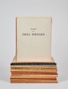[Collection ÉLOGES]. Paris, Marcel Bruker, 1947-1962. 21 fascicules in-folio, en feuilles. Bel ensemble de cette collection dont chaque volume est consacré à un peintre, avec des illustrations originales et des reproductions. L'ensemble comprend : - Maurice Asselin par Marc Sandoz (1959, Vidalon n° 195 - 3 lithographies et 3 pointes-sèches). - Émile bernard par Louis Hautecoeur (1962,vélin d'Arches n° 165 - lithographies et bois gravés). - Gus bofa par Pierre Mac Orlan (1949, Rives n° 16 - dessins en couleurs). - Maurice brianchon par Claude Roger-Marx (1955, Arches n° 132 - 6 lithographies). - Charles Camoin par Charles Vildrac (1956, Vidalon n° 102 - 8 lithographies). - Cavaillès par Jean Cassou (1958, Rives n° 137 - 6 lithographies). - Clavé par Pierre Osenat (1958, Vidalon n° 181 - 7 lithographies). - Jean-Gabriel Daragnès par Pierre Mac Orlan (1950, vélin n° 32 - 9 lithographies et 3 pointessèches). - François Desnoyer par Jean Bouret (1958, Vidalon n° 73 - 7 lithographies). - Jean Frélaut par Jacques de Laprade (1950, vélin n° 88 - 9 pointes-sèches). - Louise Hervieu par Claude Roger-Marx (1953, vélin n° 191 - dessins). - André lhote par Guy Dornand (1960, vélin n° 81 - 3 cuivres, 3 lithographies, 1 bois). - Jean lurçat par Robert Mallet (1962, vélin n° 85 - 7 lithographies). - lucien Mainssieux par Manuel Bruker (1950,vélin n° 99 - 3 cuivres et 8 lithographies). - Henri Manguin par Charles Terrasse (1954, vélin n° 191 - 10 cuivres). - bernard naudin par Claude Roger-Marx (1947,vélin n° 102 - 7 cuivres et 2 bois). - louis neillot par Jean Bouret (1962, Arches n° 138 - 8 lithographies). - Georges Oudot par Guy Dornand (1962, vélin n° 75 - 6 lithographies). - Roland Oudot par Claude Roger-Marx (1958, Rives n° 82 - 9 lithographies). - Kees Van Dongen par Paul Guth (1957, Vidalon n° 169 - 8 lithographies). - Jacques Villon par Jacques Lassaigne (1955,- Rives, non justifié - 10 cuivres). On joint : De la musique encore et toujours ! Paris, éditions du Tambourinaire, 1946. In-4, broché. Textes de Claudel, Cocteau, Éluard, Mallarmé, etc., et illustrations de Brianchon, Dignimont