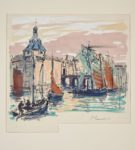 Gustave FLAUBERT. Par les champs et parles grèves. Le Vésinet, Victor Dancette, 1943. In-4,en feuilles, chemise et étui. Monod, I-4688 /// 183-(1f.).49 planches en couleurs gravées sur bois par Paul Baudier, dont le frontispice et 6 à pleine page. Tirage à 290 exemplaires, celui-ci un des 12 surJapon impérial contenant une suite des bois sur Chine et 2 aquarelles originales signées. Exemplaire imprimé pour Gaston Girousse (n°11) et enrichi de la décomposition d'une planche.