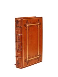 Anatole FRANCE. Thaïs. Paris, Collection des Dix, 1900. Petit in-4, veau marron glacé, double encadrement à l'antique formé de multiples filets dorés et filets à froid avec palmettes à froid, dos à 5 nerfs orné de même, encadrement intérieur du même veau avec reprise du décor, doublure et gardes de suédine verte, tranches dorées, couverture, étui (Gruel). Monod I, 4958 /// (3f.)-240-(1f.). 61 compositions de Paul-Albert laurens gravées à l'eau-forte par Léon Boisson, dont la couverture, le frontispice, 7 hors-texte, une vignette de titre et 51 dans le texte. Tirage à 300 exemplaires, celui-ci un des 45 sur vélin d'Arches (n° 91) contenant 3 états des illustrations hors-texte dont l'état définitif, un état avec remarques et l'eau-forte pure avec remarques, et 2 états des illustrations dans le texte dont l'eau-forte pure. Bel exemplaire enrichi du prospectus (3f. et une planche).