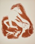 Claire GOLl. Journal d'un cheval. Bruker, 1952. In-4, en feuilles, chemise illustrée à cordons. Monod, I-5554 /// 56-(2f.) 2 eaux-fortes et 5 lithographies de Marc Chagall, dont la couverture en couleurs. Tirage à 200 exemplaires, celui-ci sur vélin (n°127).