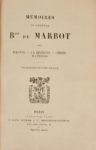Général MARBOT. Mémoires. Paris, Plon, s.d. (vers 1900). 3 volumes in-8, demi-chagrin marron, dos à 5 nerfs, têtes dorées (Reliure de l'époque). Tulard, 500 /// I. XII-390-(1f.) / II. (2f.)-495 / III. (2f.)-446-(1f.) Mémoires très populaires, maintes fois réédités, mais dont la véracité a fortement été mise en doute. Reliure décolorée