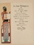 Comtesse Anna de NOAILLES. Les Climats. Paris, Le Livre Contemporain, 1924. In-4,maroquin chocolat, premier plat orné d'un bouquet de fleurs mosaïquées de maroquin orange, bleu, bleu marine et vert avec rehauts de petites boules dorées de différentes tailles, deux bandes horizontales mosaïquées de maroquin marron passant sur le dos lisse, tête dorée, doublure et gardes de reps moiré bleu, couverture et dos, chemise demi-maroquin à recouvrements et étui (François-Louis Schmied). Monod II, 8701 /// (3f.)-151-(3f.). 82 illustrations en couleurs gravées sur bois de François-Louis Schmied dont la couverture, le frontispice, 6 à pleine page, 40 dans le texte et 34 ornements et culs-de-lampe. Tirage à 125 exemplaires sur Japon, celui-ci imprimé pour A. Bertaut (n° 65) et enrichi de 5 gouaches originales signées dont une pleine page, 2 demi-pages et 2 culs-de-lampe, tous ayant servi à l'illustration. L'exemplaire contient également 5 épreuves d'essai en noir sur divers papiers, une épreuve d'essai du menu, 4 épreuves du même dessin dont 3 en couleurs, et l'épreuve définitive. Bel exemplaire relié par Schmied comportant la maquette originale à la gouache de la reliure.