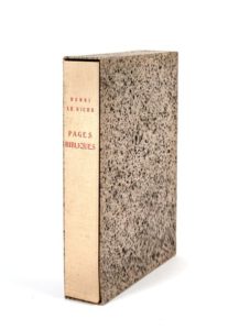 PAGES BIBLIQUES. Paris, Ducros et Colas, (L'illustrateur), 1938. Petit in-plano de format grand in-4, en feuilles, chemise et étui. Monod, II-8821 /// (2f.)-XII-215f. Traduction d'Édouard Dhorme illustrée de 140 eaux-fortes originales en noir de Henri Le Riche dont une grande vignette de titre, 70 planches hors texte comprises dans la pagination et 69 dans le texte. Tirage limité à 100 exemplaires sur vélin d'Arches (n° 95), celui-ci enrichi d'un petit croquis original signé sur le faux-titre avec envoi à Gaston Girousse.
