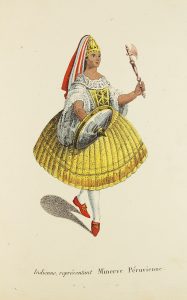 Atlas des voyages des PP. Manuel Sobreviela et Narcisso y Barcelo. Il renferme 1 grande carte du Pérou et du Chili dressée par Lacruz et 12 planches lithographiées délicatement aquarellées montrant des péruviens et péruviennes en costume. Petites et rares rousseurs. (Quérard IX, 190) (Sabin, 81617).