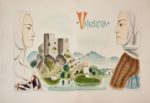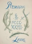 François PÉTRARQUE. Madrigaux, sextines, ballades, sonnets, chants. Paris, Les Cent Bibliophiles, 1958. Petit in-folio, en feuilles, chemise et étui. Monod, II-9034 /// CLIII-(4f.). 30 illustrations dans le texte en couleurs de Pierre-Yves Trémois, dont 5 à double page. Tirage à 138 exemplaires sur vélin teinté de Montval, celui-ci imprimé pour Gaston Girousse (n° 11) enrichi d'une des 17 suites sur Japon Hodomura, de 2 aquarelles originales, du tirage d'une grande planche rehaussée par Trémois de calligraphie à l'encre de Chine, et du menu tiré à 60 exemplaires. Manque une planche dans la suite.
