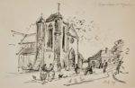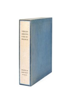 Louis RÉAU. Vieilles abbayes d'Ile-de-France. Paris, Société de Saint-Éloy, 1955. In-4, en feuilles, chemise et étui. Monod, II-9496 /// 178-(5f.). 66 illustrations à l'eau-forte par Achener (7), Baudier (3), Beaufrère (1), Bouroux (6), Cheffer (5),Cottet (4), Decaris (6), Hallo (6), Hertenberger (5), Jeannisson (1), Josso (5), Lemagny (7), Lézardière (5) et Vahl (4). Tirage à 135 exemplaires sur Arches, celui-ci imprimé pour Gaston Girousse (n° 82). Exemplaire enrichi d'une des 5 suites sur Japon Impérial à l'état définitif, d'une des 10 suites sur Hollande en premier état avec remarques, de 5 aquarelles originales signées, 2 dessins originaux à la plume et 3 lithographies de Paul Baudier, de 3 menus de Trémois dont un en 4 états, un en 2 états et un en état définitif, l'ensemble contenu dans 2 chemises à part. Décharge du frontispice.