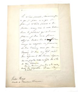 HUGO Victor (1802-1885) L.A.S. (s.l.n.d.). 1 p. in-8 contrecollée sur papier. Hugo exprime …