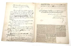 LESSEPS Vicomte Ferdinand de (1805-1894). 2 documents. L.A.S. « à Messieurs Fauchey, Laffite et Bullier », Paris, 21 décembre 1863. 2 pp. in-8. Contrecollée sur papier et M.S. (date et compliment autographe), Paris, 19 décembre 1863. 1 p ½. in-4. Ensemble comprenant une lettre demandant la publication dans les journaux d'une note (le manuscrit signé) ayant pour sujet la Compagnie Canal de Suez. La note est fortement corrigée et annotée. Cette note indique « Toute sa base est formée au moyen d'un texte falsifié matériellement. Plusieurs documents essentiels et les faits les plus important y sont dissimulés, altérés, supprimés. On y trouve de fausses allégations jusqu'à la diffamation des personnes. […] »